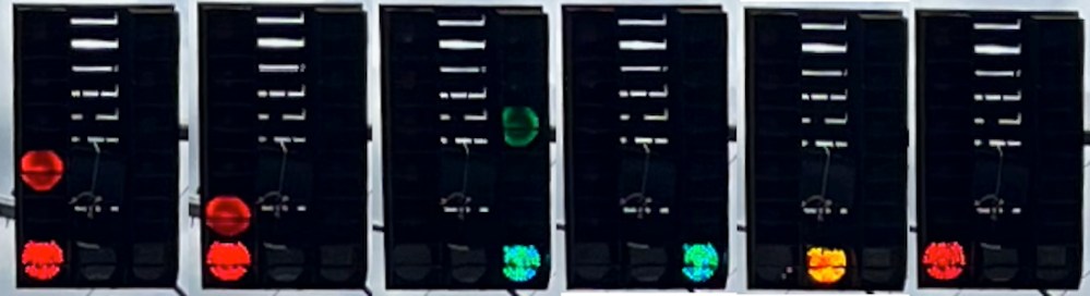 Here is an abbreviated sequence of the various colors of a traffic light placed in the intersection of Avenida Francisco Pereira Lopes and Rua Ângelo Passeri in São Carlos, SP, Brazil. Pictures taken on 56’2025 (2025-02-25).