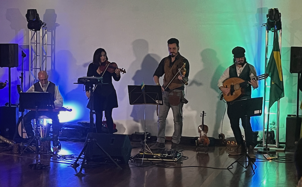 This music group is called Clan Mac Norse and their speciality is to play Nordic folk music. They come from Curitiba, state of Paraná, Brazil.
