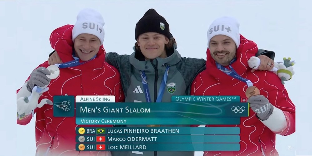 First in chronological order is the entire Brazilian population, that finally could be proud and see a Brazilian citizen in the highest place of the prize tribune in an event belonging to an Olympic Winter Game. Here is a photo of Lucas Pinheiro Braathen and his colleague medalists at the ceremony after the alpine giant slalom skiing event. For more about Lucas, see also my earlier posts 91’2024 (2024-03-31) and 320’2025 (2025-11-16).